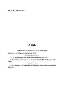 Bill No.16 Liquor (Amendment) Bill of 2023